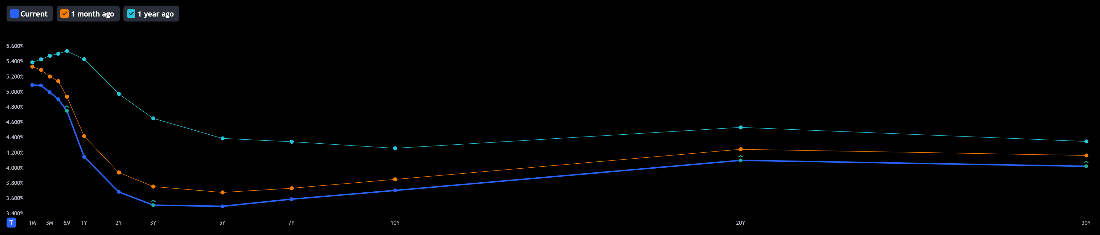 Výnosová křivka je grafické znázornění úrokových sazeb na amerických vládních dluhopisech v závislosti na době jejich splatnosti.