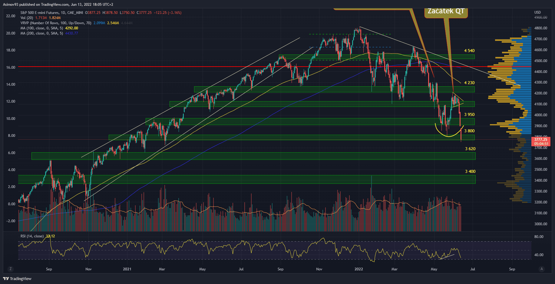 Když se podíváme na akciové indexy, na první pohled to ještě není až taková tragédie. Ale když se koukneme na mnohé růstové tituly jako jsou akcie PayPal, Meta a Intel, je to docela špatné. Respektive je to vyloženě spoušť. Leč následující rok bude období velkých příležitostí. Což jsem již vysvětlil ve svém květnovém článku na “Obchodní příprava na QT“. Je třeba to vydržet, i když to bolí.