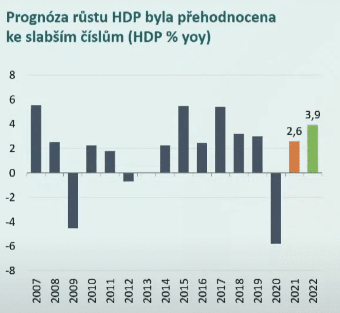 Zdálo by se, že se jedná o malou korekci v odhadu růstu HDP směrem dolu. Ovšem i takto malé snížení znatelně pocítí veškeré subjekty v ekonomice včetně veřejných rozpočtů. V příštím roce bude rozhodující zejména to, jak zareagují spotřebitelé na rostoucí inflaci. Zda budou v době rostoucích cen omezovat spotřebu či nikoliv. Hlavně tento faktor rozhodne o vývoji tuzemského HDP v roce 2022.
