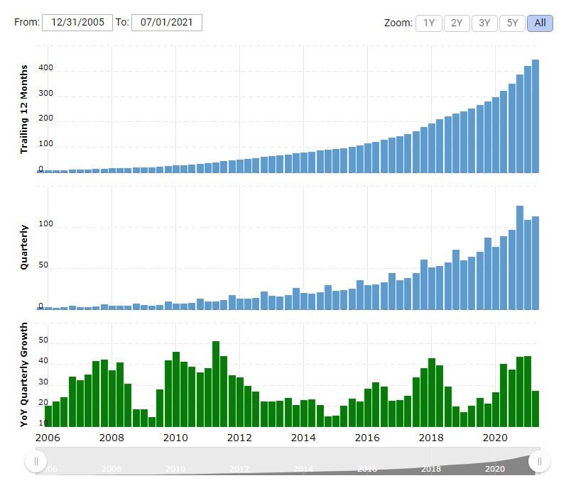 Vývoj tržeb společnosti Amazon od roku 2006.