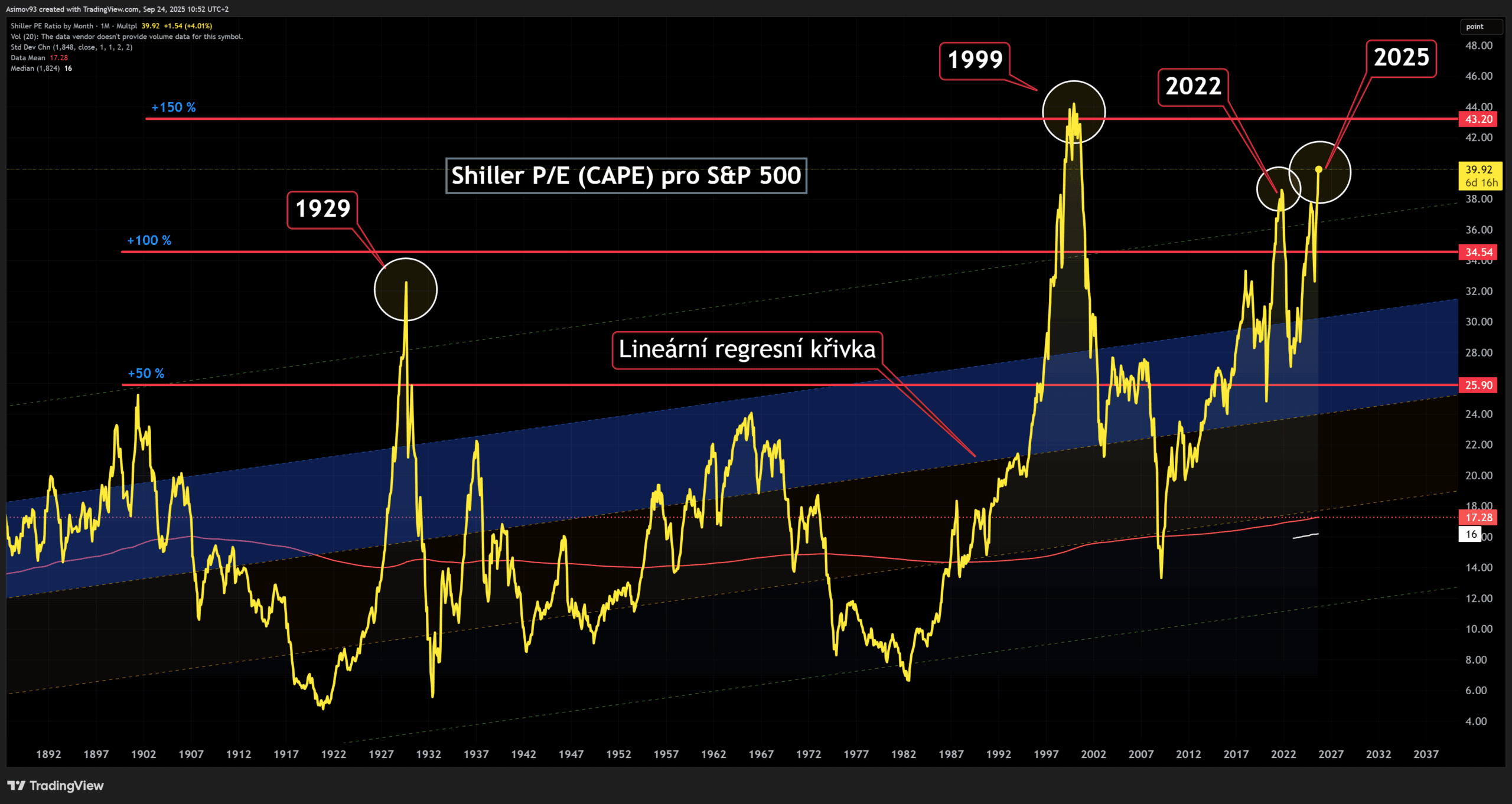 To jsou úrovně, které naposledy byly zaznamenány v roce 2000, tedy během období tzv. dotcom bubliny, což jsou téměř 3 směrodatné odchylky od průměru a to nám statisticky dokládá, v jakém extrému jsou nynější valuace.