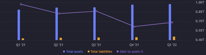 Celková aktiva společnosti jsou téměř 970 miliard USD. Zatímco celkové závazky jsou 452,64 miliardy USD. Proto vlastní kapitál dosahuje cca 517 miliard USD. Meziročně vlastní kapitál vzrostl o 13,4 %.