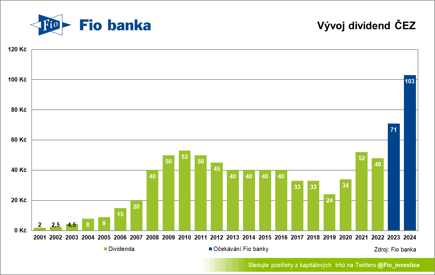 Historicky tak jde v nominální výši o jednu z největších dividend vyplacených akcionářům. Na základě aktuální tržní ceny akcie ČEZ, dosahuje dividendový výnos zhruba 4,5 %. Na rok 2022 a 2023 činí odhady 71 a 103 korun za akcii.