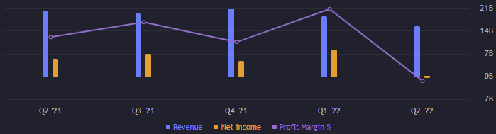 Hrubá marže je za druhý kvartál něco přes 36 %. Prismatem předešlých čtvrtletí je na první pohled jasný velký propad. Provozní marže též hodně klesla. Předešlá čtvrtletí se pohybovala v rozmezí 30-20 %, nyní je -4 %. Čistá marže Intelu byla jako počasí, ale vždy ve slušných číslech. Za první kvartál dosahovala dokonce 44 %. Nyní je to -3 %.