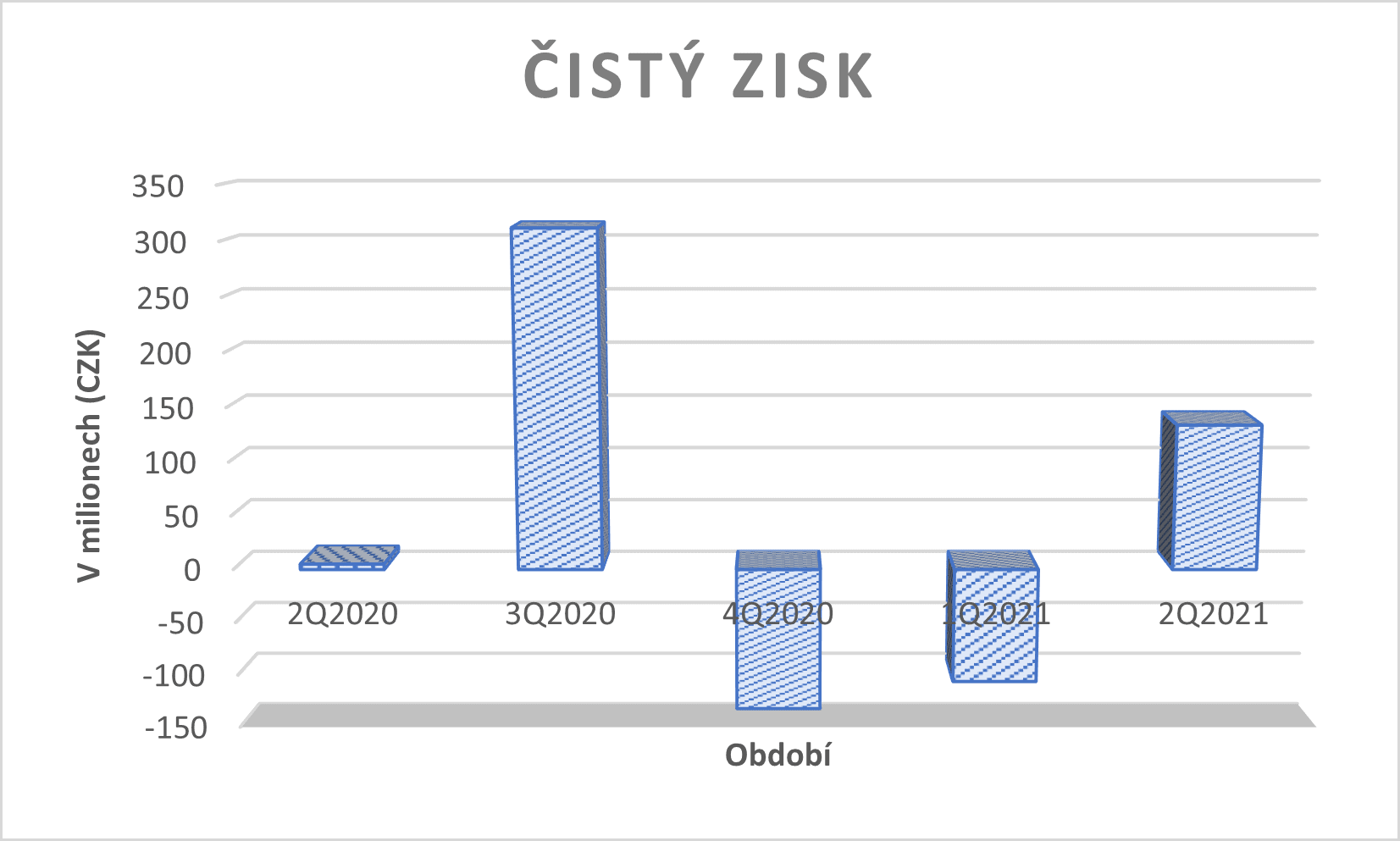 Co se týče čistého zisku, jak vyplývá z přiloženého grafu, Kofola je jako počasí. Čtvrtý kvartál minulého roku a první kvartál letošního roku byl vůbec nejhorší. Tehdejší ztráty dosahovaly až 132 milionů korun. Druhý kvartál je ovšem už solidní. Čistýzisk činil 134 milionů korun. Zisk na akcii (EPS) je tak 6 bodů.