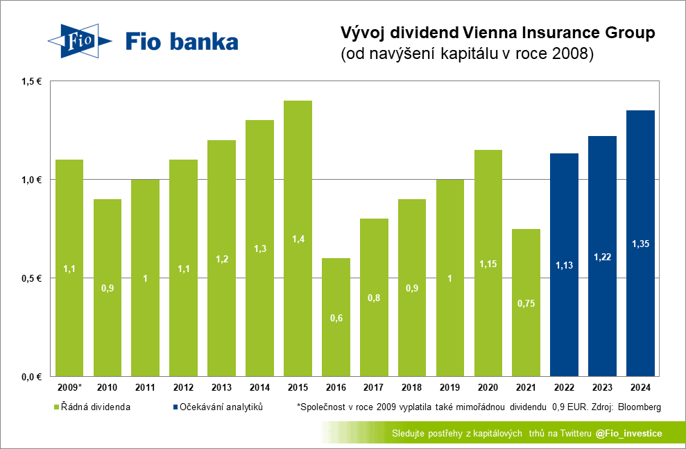 Historie a projekce dividendy VIG. Zdroj: fio.cz