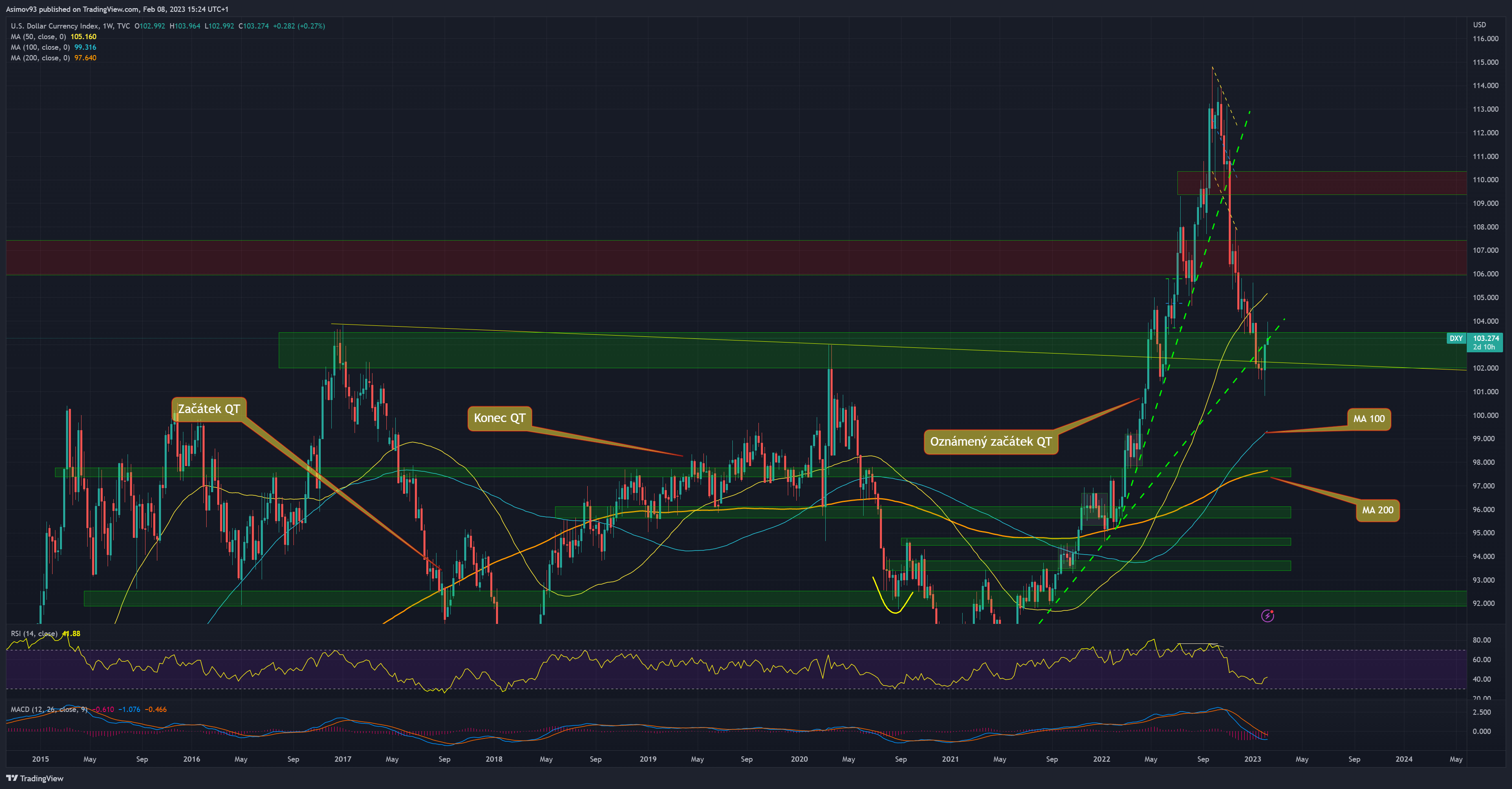 Týdenní graf dolarového indexu
