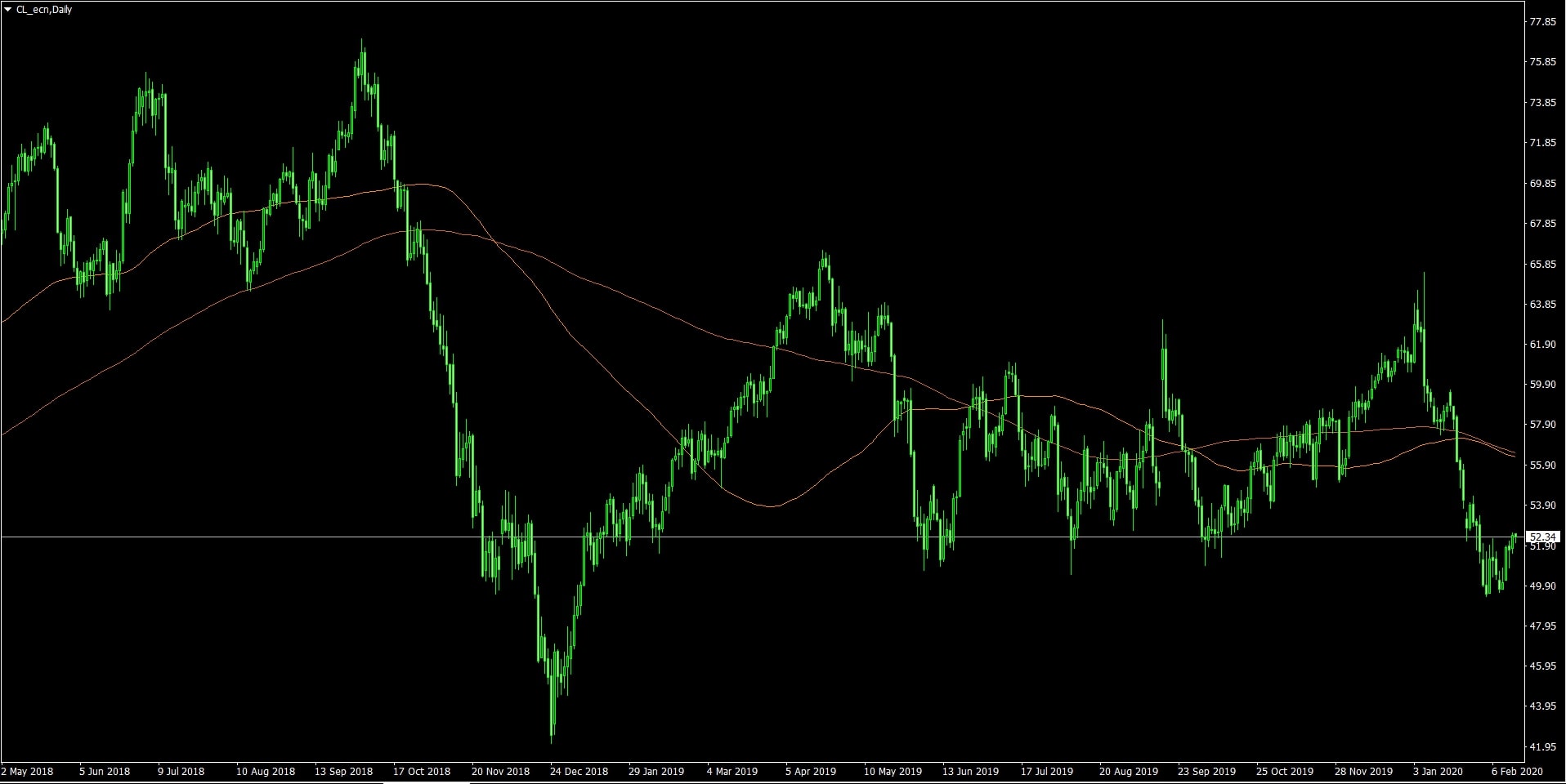 Ropa WTI na denním grafu 17. 2. 2020