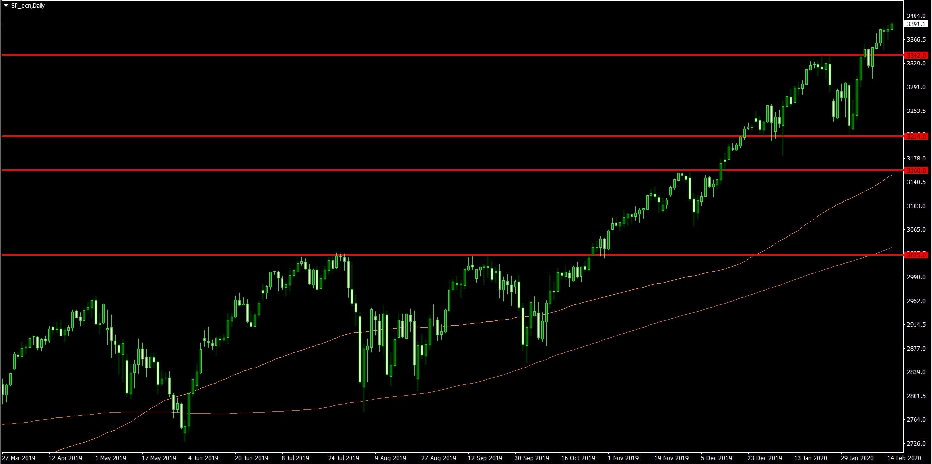 SP 500 na denním grafu 17. 2. 2020