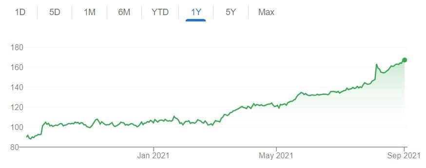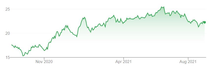 Irský low-cost letecký přepravce utrpěl (podobně jako celý letecký průmysl) významné ztráty v důsledku pandemie koronaviru. Během loňského léta se akcie Ryanair propadly o přibližně 50 %, od začátku letošního roku však výrazně rostou. V posledních měsících patří společnost rovněž k velmi oblíbeným investicím největších globálních investičních fondů.