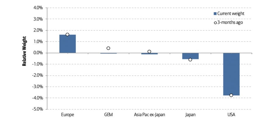 Změny relativní váhy jednotlivých akcií dle regionů v investičních portfoliích největších světových fondů
