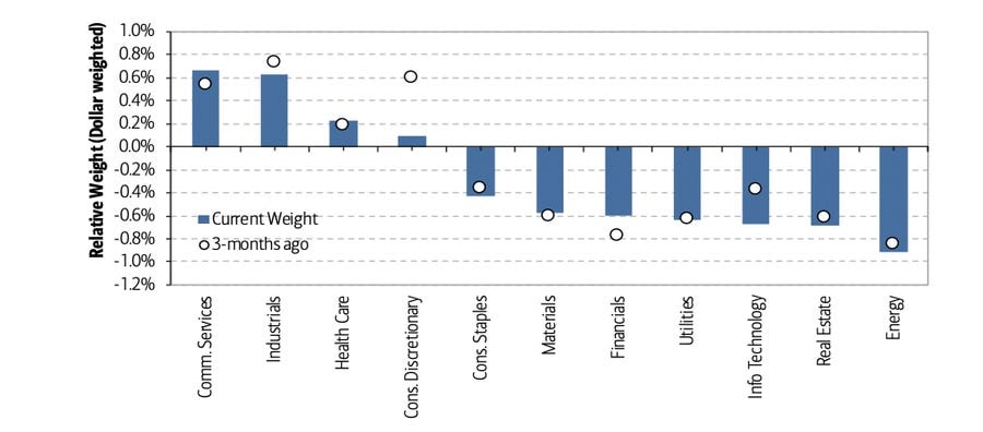 Investiční Fondy pak byly v červenci nejvíce nakloněny sektorům globálních komunikačních služeb a globálních průmyslových podniků, kde zvýšily expozici o 8,4 miliardy dolarů, respektive 9,6 miliardy dolarů. Své pozice naopak snižovaly v sektorech energetiky, financí a materiálů. Silnější globální zisky a vyšší výnosy z dluhopisů by mohly vyvolat obrat v tomto trendu.