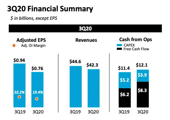 Výnosy firmy klesly ve 2Q o 9 % a ve 3Q o 5 %. Zhoršil se také ukazatel EPS (výnos na akcii), který klesl o 19 %. Tyto ukazatele se zhoršily díky pandemii koronaviru. Ta však jednou skončí.