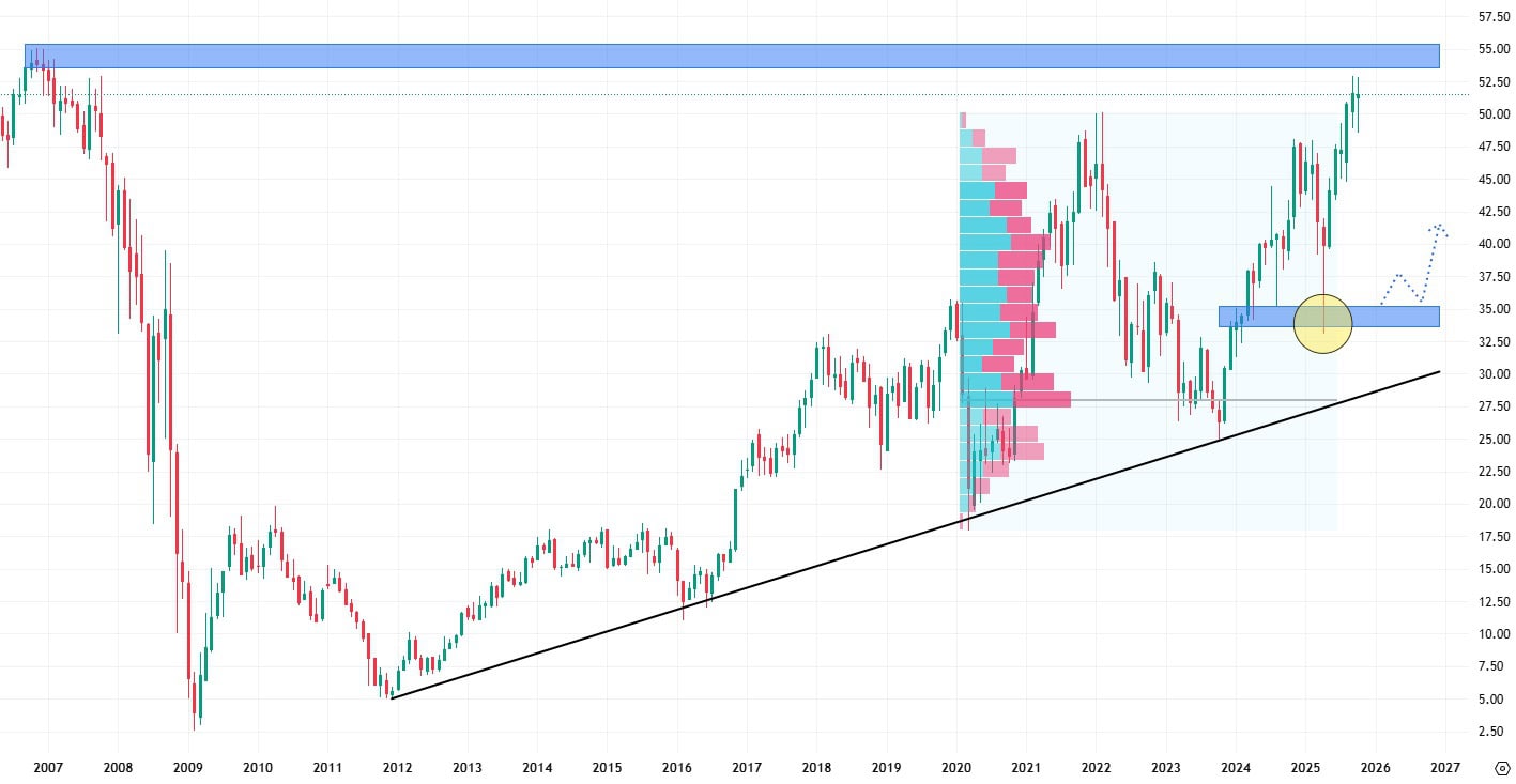 Agresivní vstup prodejců do trhu totiž může spustit efekt sněhové koule, který by znamenal prodejní korekci. Nevýhodou těchto akcií je, že nejbližší support se nachází na ceně 35 USD je již jednou otestovaný.