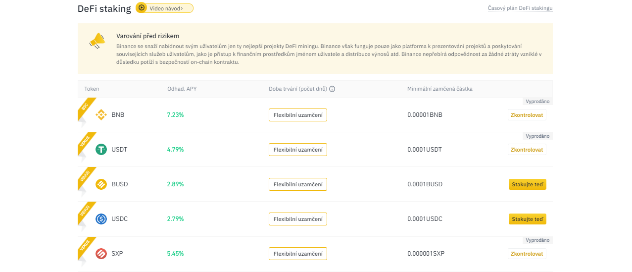 Pro odvážnější si společnost Binance připravila i vysoko rizikové/výnosové produkty. Jsou znovu dostupné přímo v Binance.