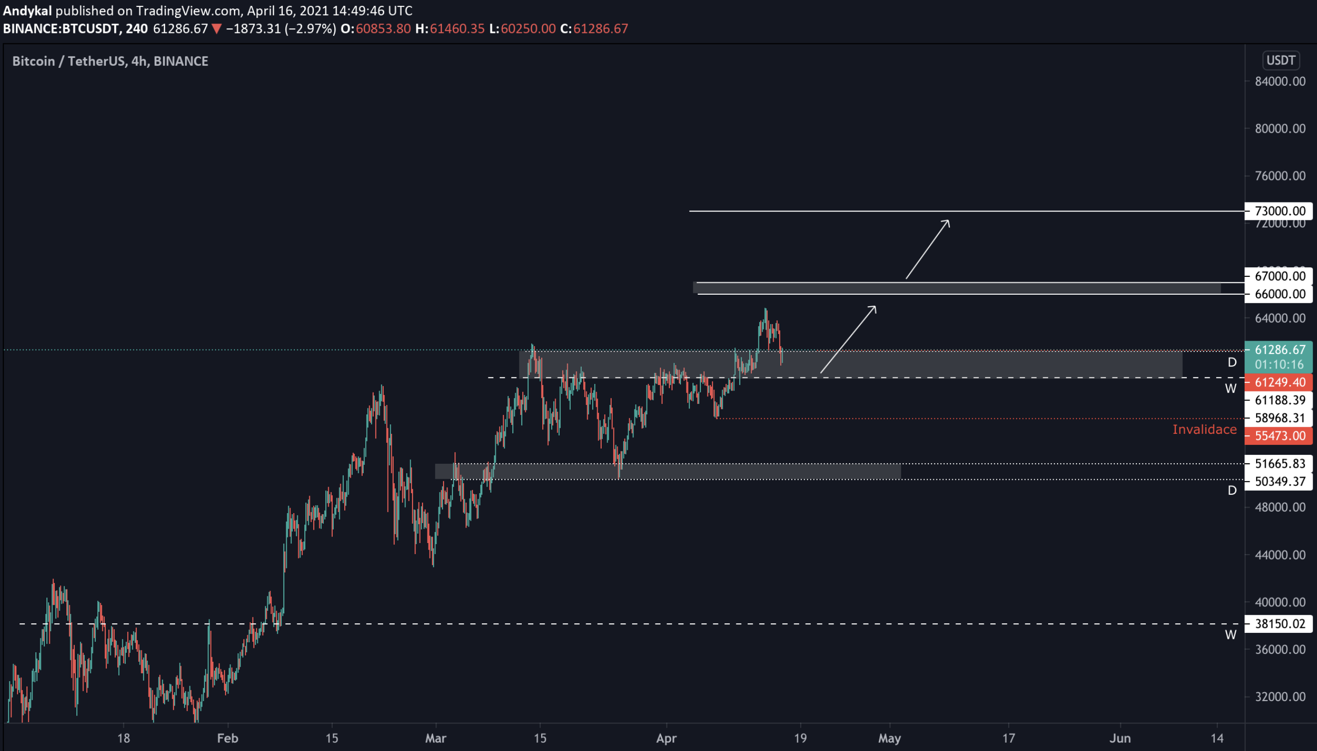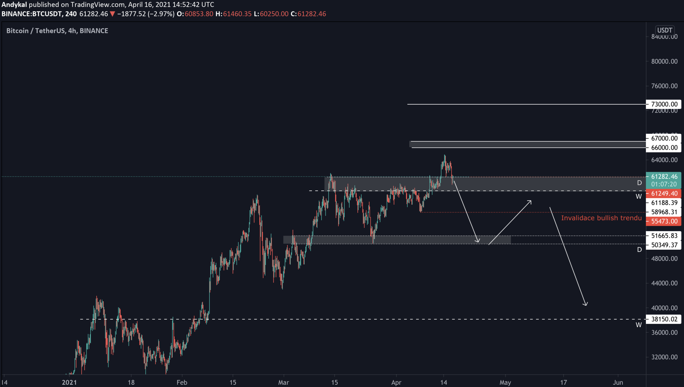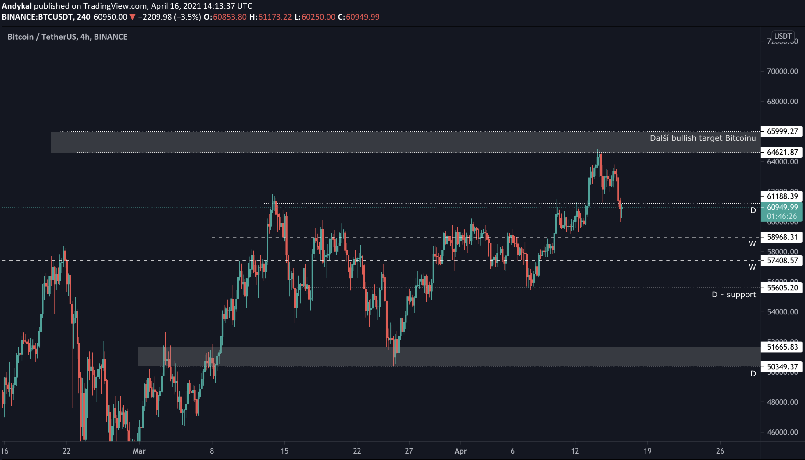 Prakticky celá zóna mezi 61 200 – 59 000 bude působit jako supportní a další targety mohou být: