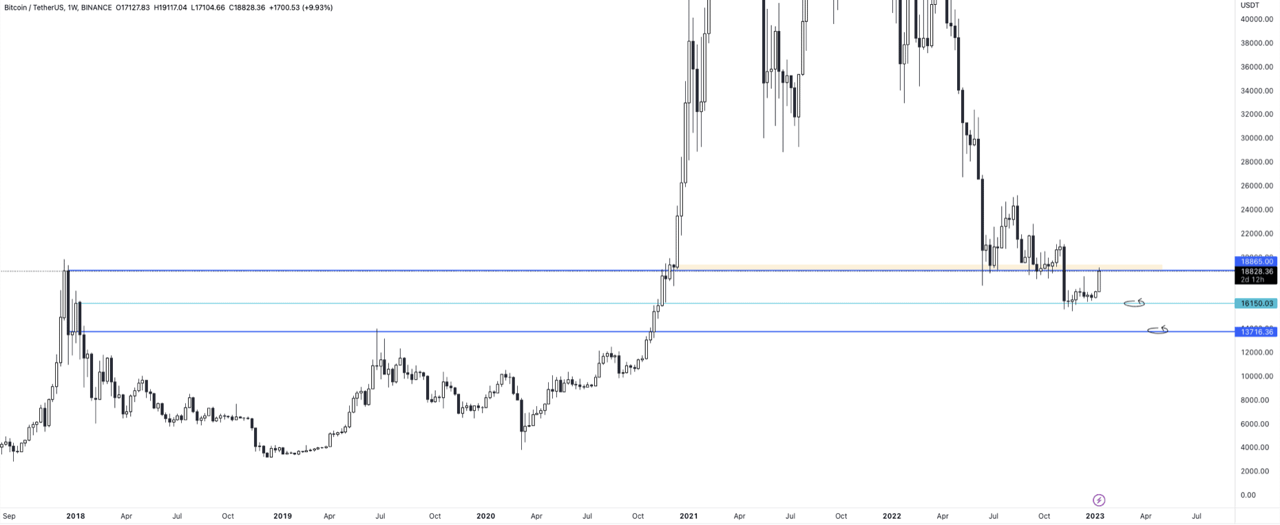 Zároveň se tak BTC dostal do zóny, o které jsme psali v mnoha předchozích analýzách jako ideální dlouhodobý level pro otestování. Pojďme se podívat blíže: