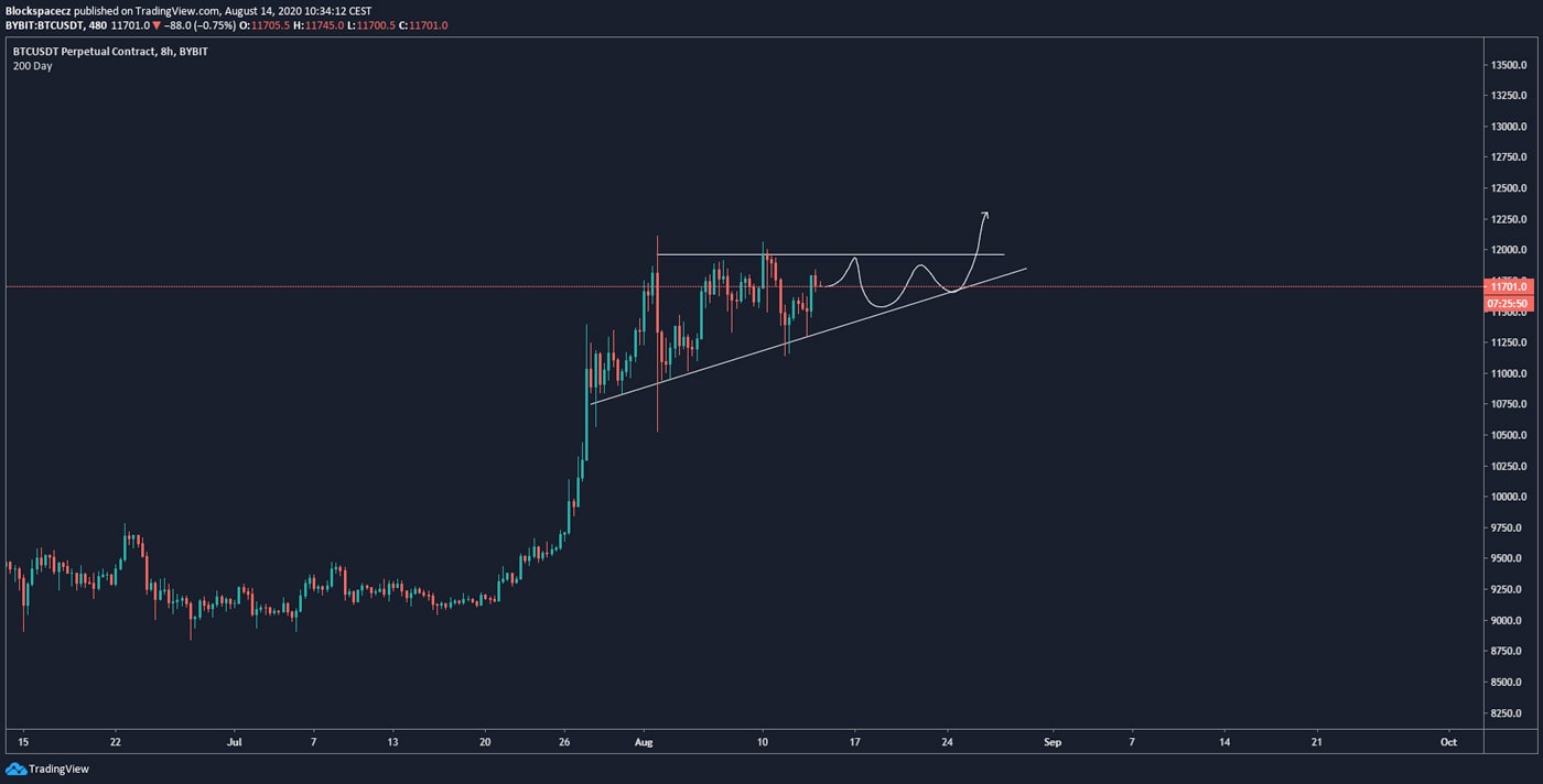 Ikdyž byl obecný sentiment v minulém týdnu nastavený stále na další nekonečný růst, náš předpoklad se ukázal jako pravdivý a opravdu se tento pátek pohybujeme prakticky na stejných úrovních, jako při minulé analýze. Aktuální kurz Bitcoinu je 11 720 USD.