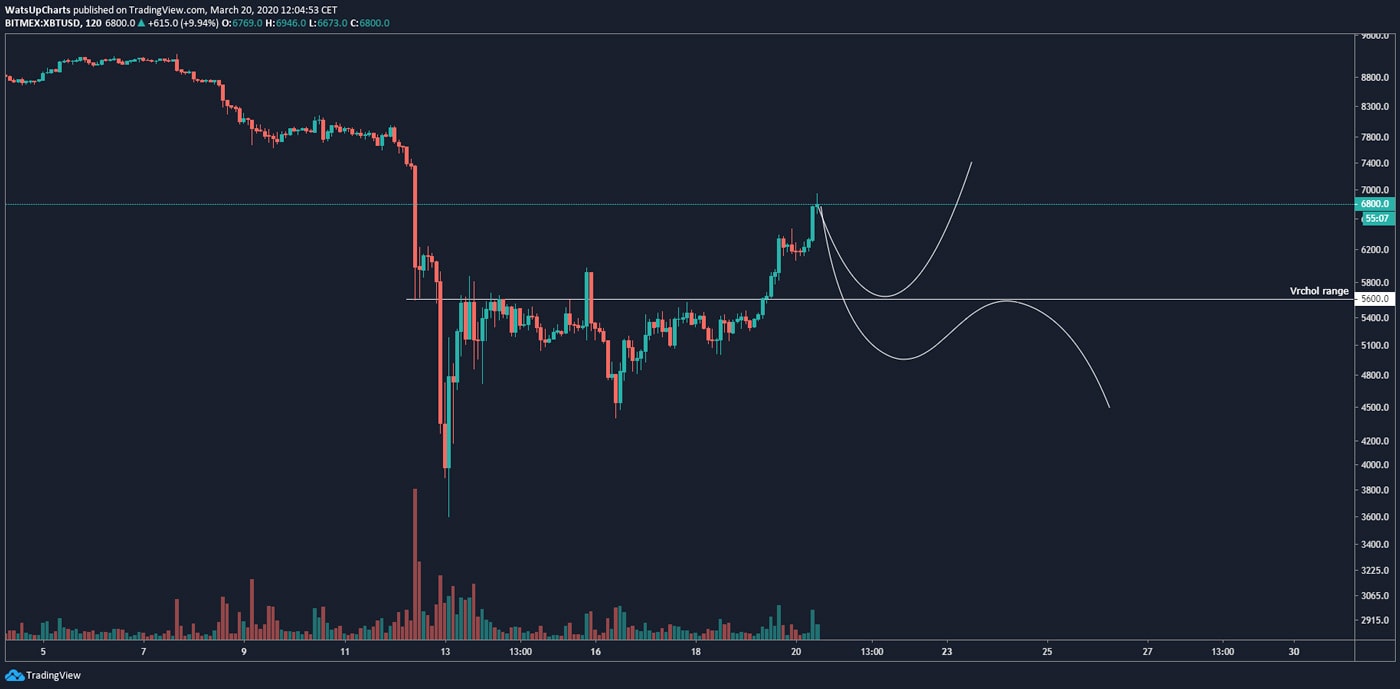 Na druhou stranu pokud by byla cenovka 5 600 USD proražená, nejspíš se BTC v rozmezí mezi 4 500 a 6 400 USD zdrží ještě následujících několik týdnů. Tento pohyb by pro trh byl velmi zdravý.