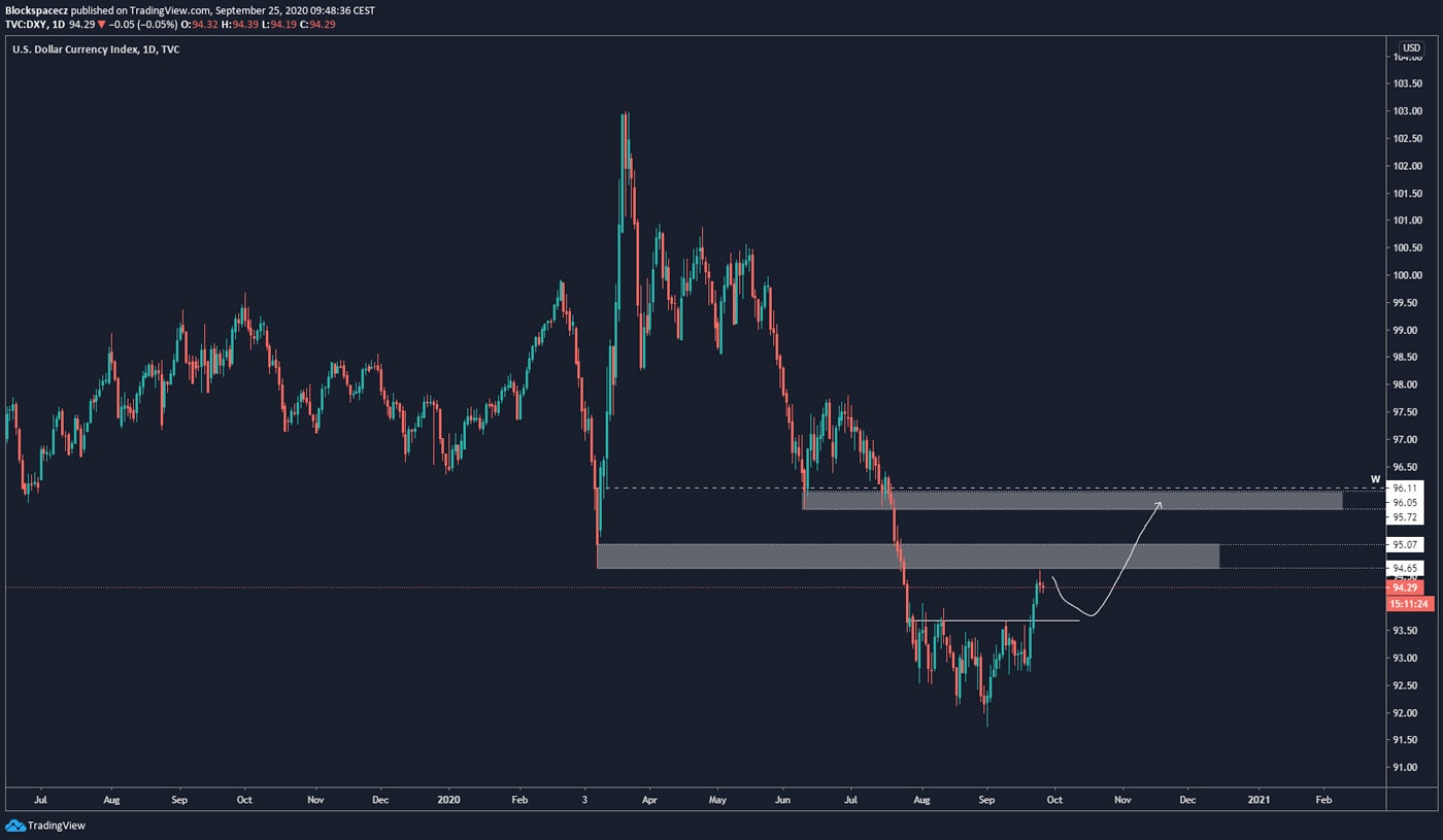 Poslední dobou jsou pohyby na světovém trhu tažené silou (nebo slabostí) dolaru. A protože je velké množství obchodníků zainteresováno také v kryptoměnách, musíme brát sílu dolaru v potaz i při analýze ceny Bitcoinu.