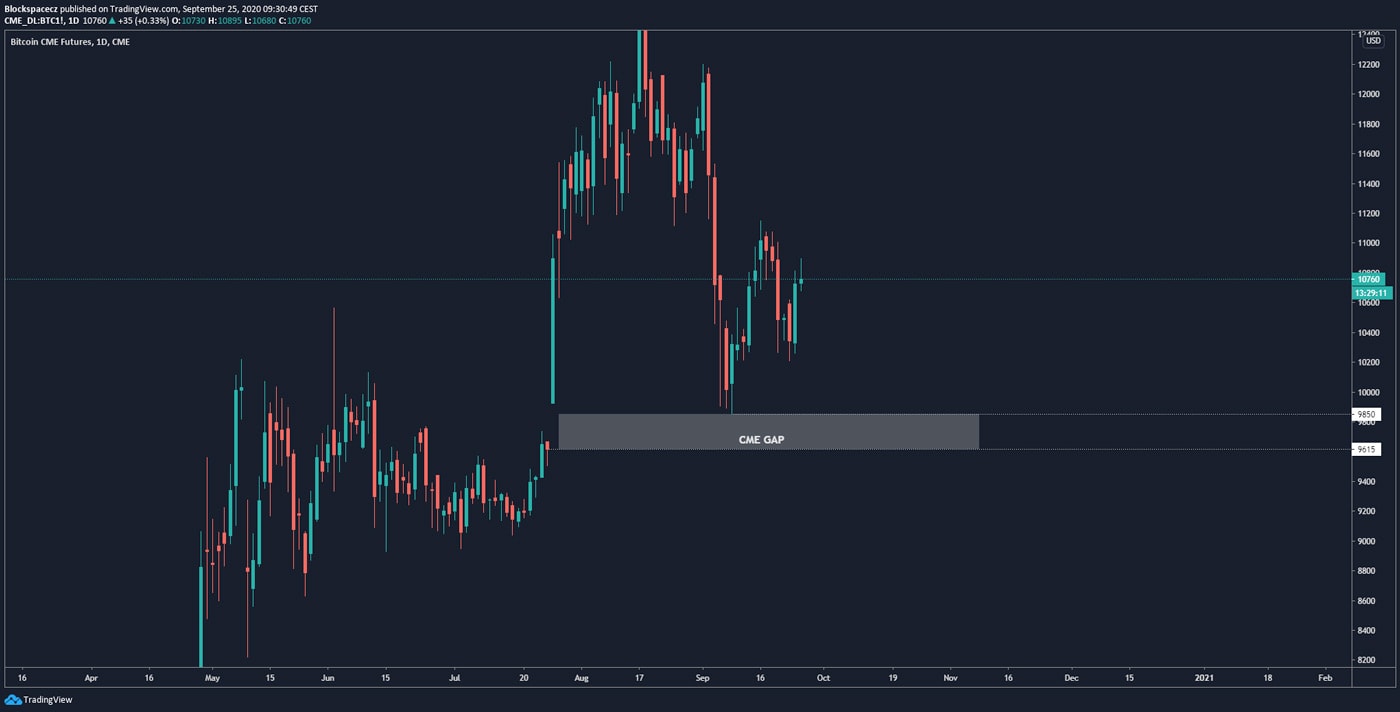 Tímto by se vyplnil také CME gap na cenách 9 850 – 9 615 USD, který zrovna na kurzu BTC má tendenci se plnit.