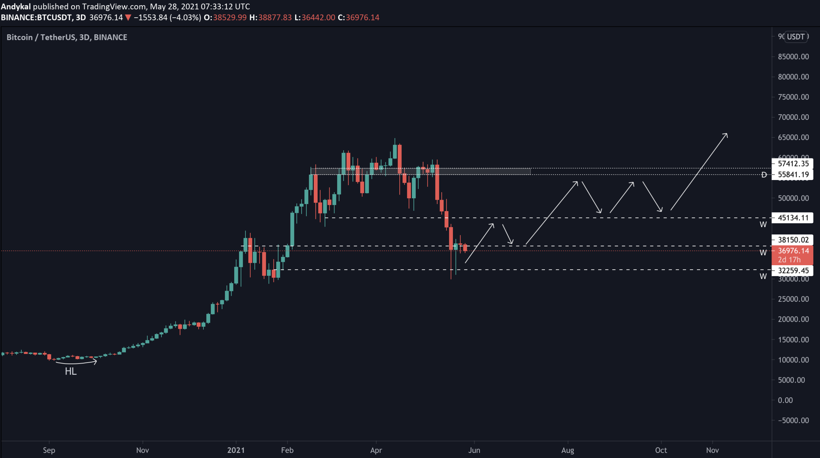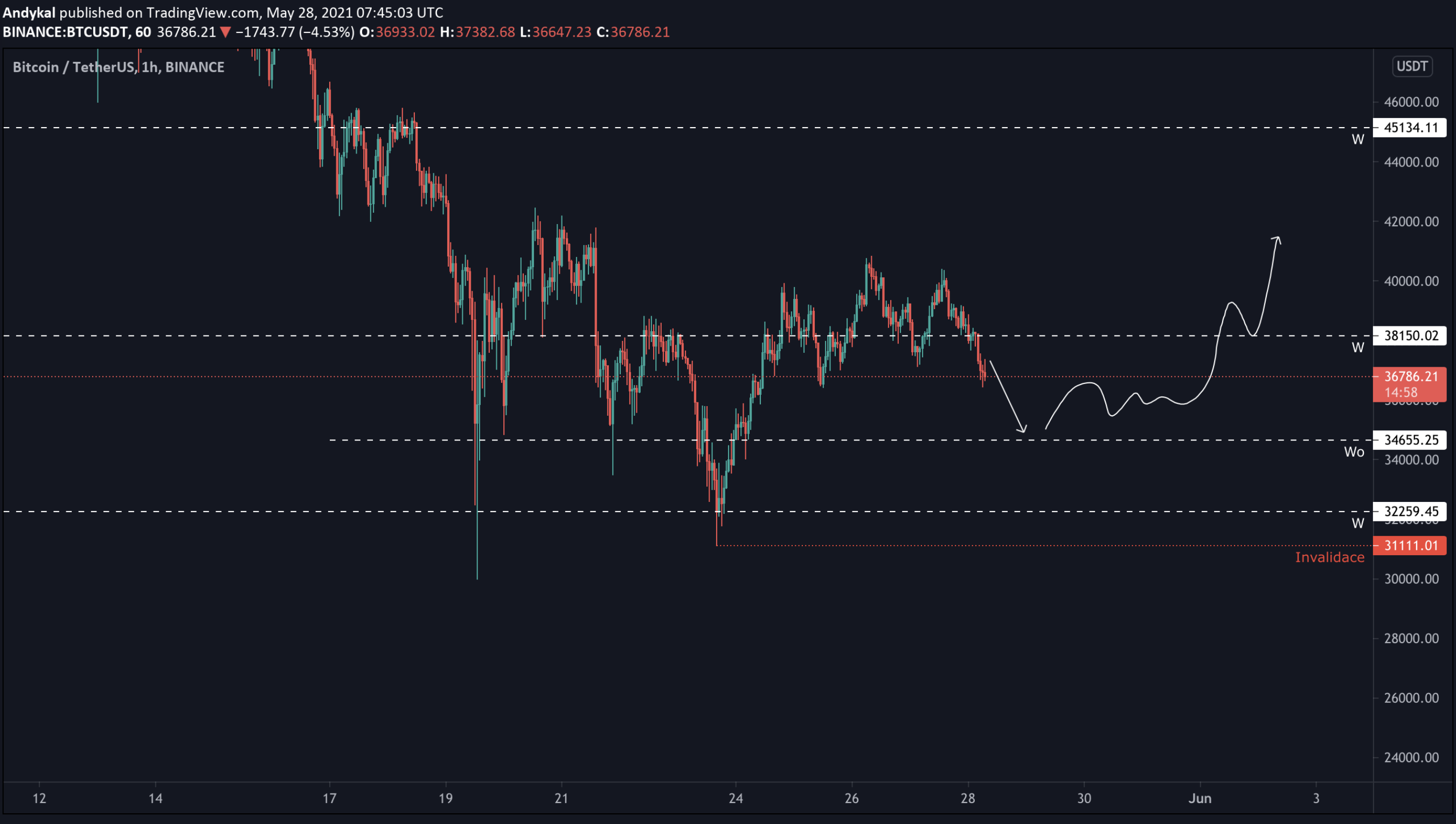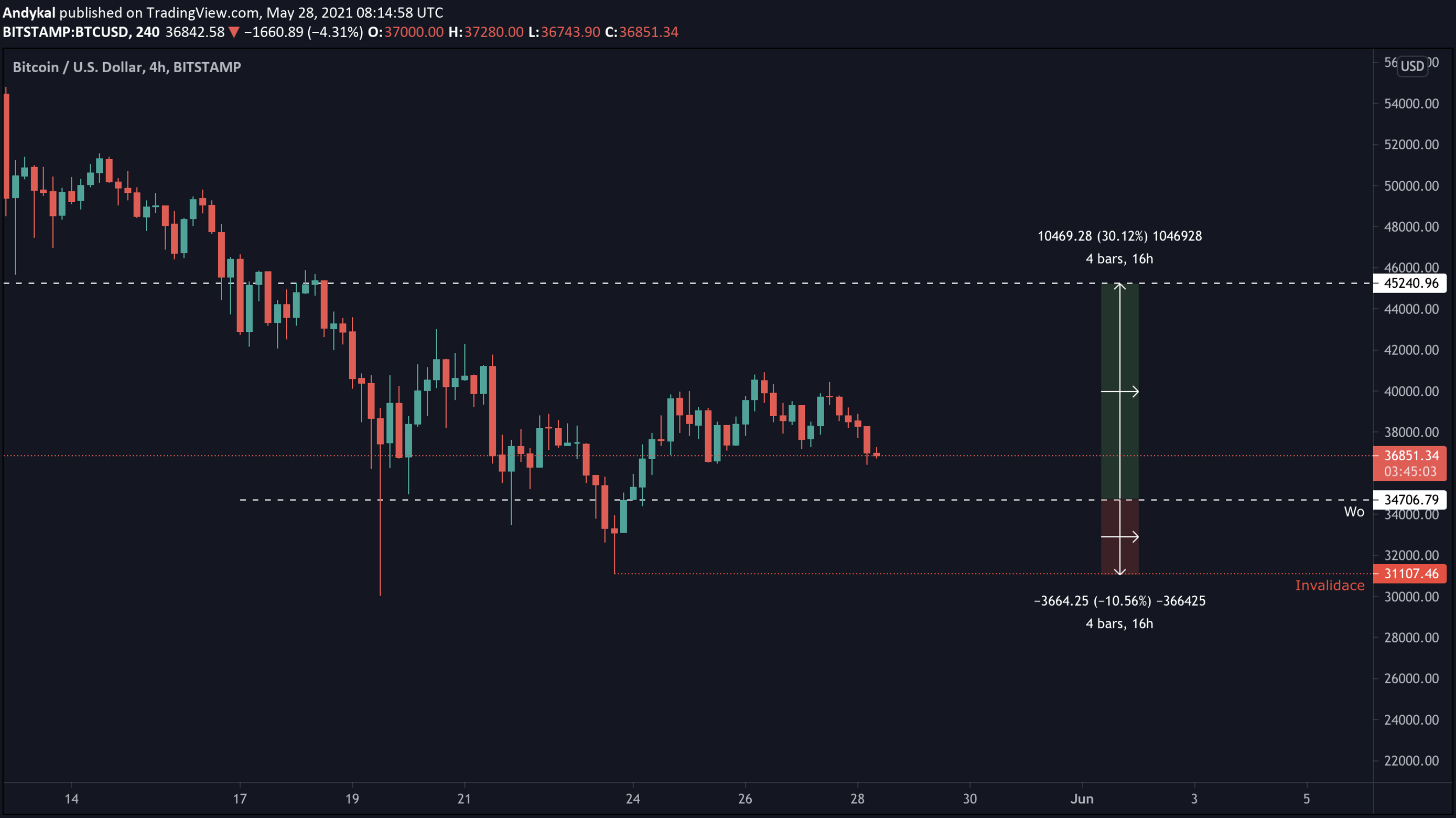 Potenciální návrat na ceny na úroveň 36 450 USD.