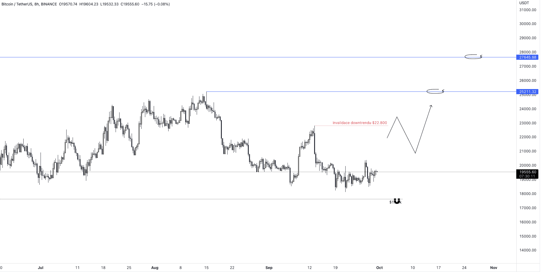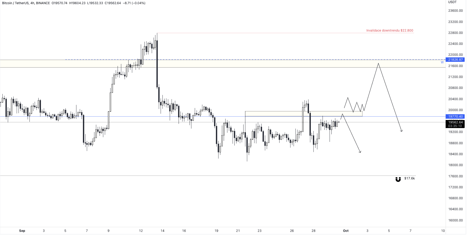 V základu jde o to, že BTC je dále v downtrendu a stále bychom měli očekávat jeho pokračování vstříc 17 600 USD. Invalidace je nad 22 800 USD. V té chvíli by se otevírala daleko větší cesta nahoru k 25+ tis. USD.