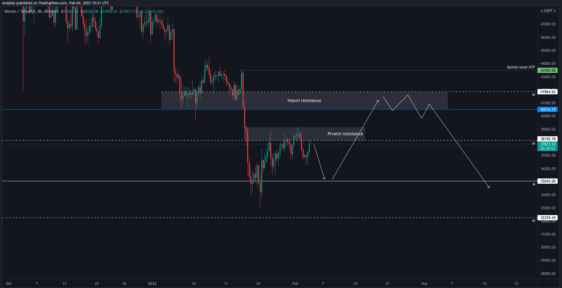 A vzhledem ke krátkodobé struktuře bych očekával, že 35 tis. USD bude nejspíš první z nich, který bude otestovaný.