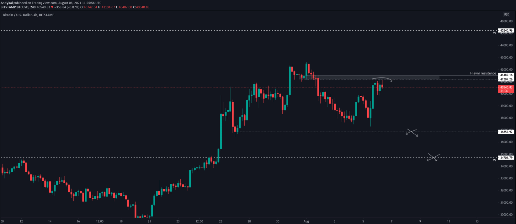 Dnes není moc víc co k Bitcoinu dodat – stojíme na důležitém milníku, kterým je rezistence 41 200 – 41 500 USD.