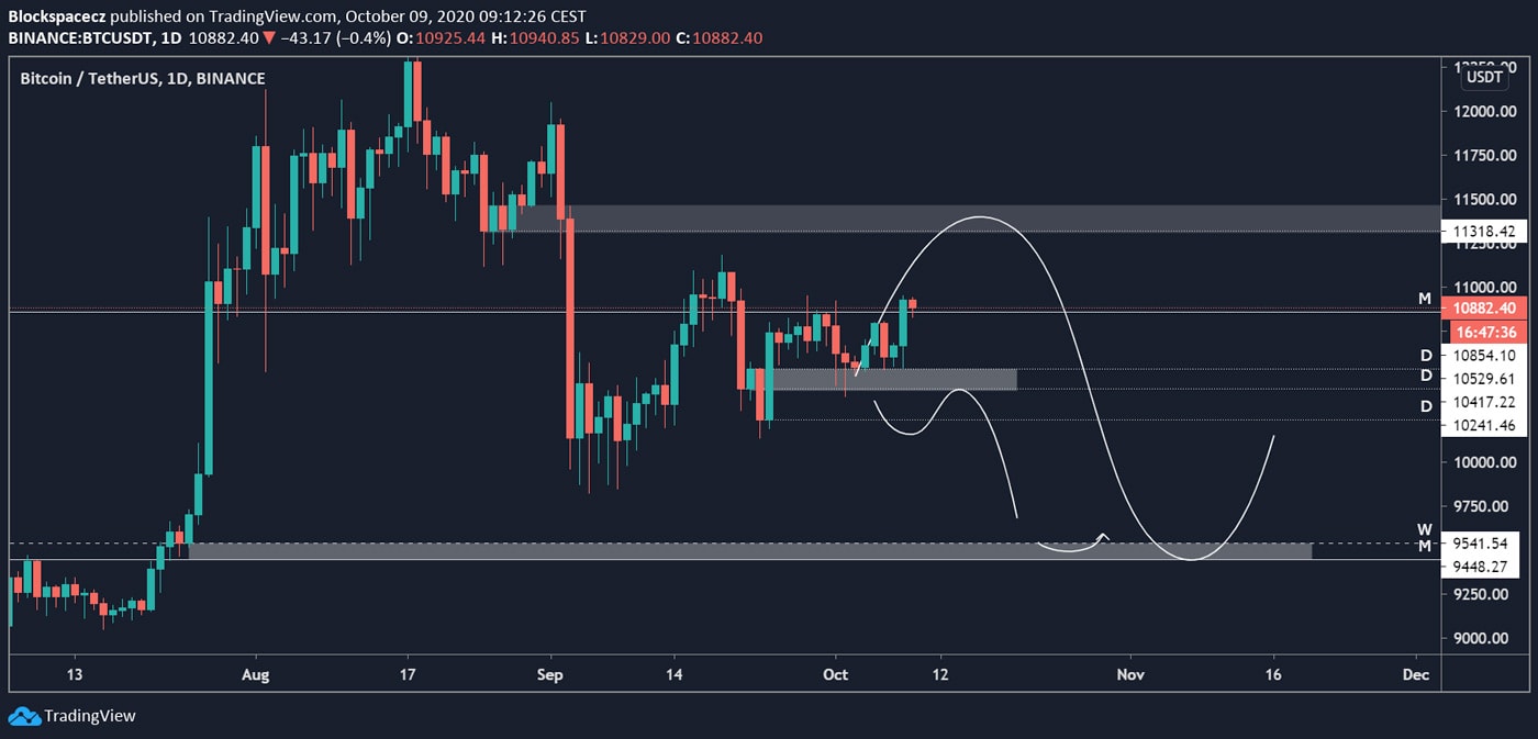 Pokud bych tedy nyní shrnul, co od trhu očekávám, tak je to cesta nahoru, vstříc rezistencím 11 080, 11 300 USD a případně v hodně bullish trhu i 11600 USD. Krátkodobě bychom nyní mohli mít pullback zpět k weekly open (10 666 USD), ale neměli bychom jít pod něj.