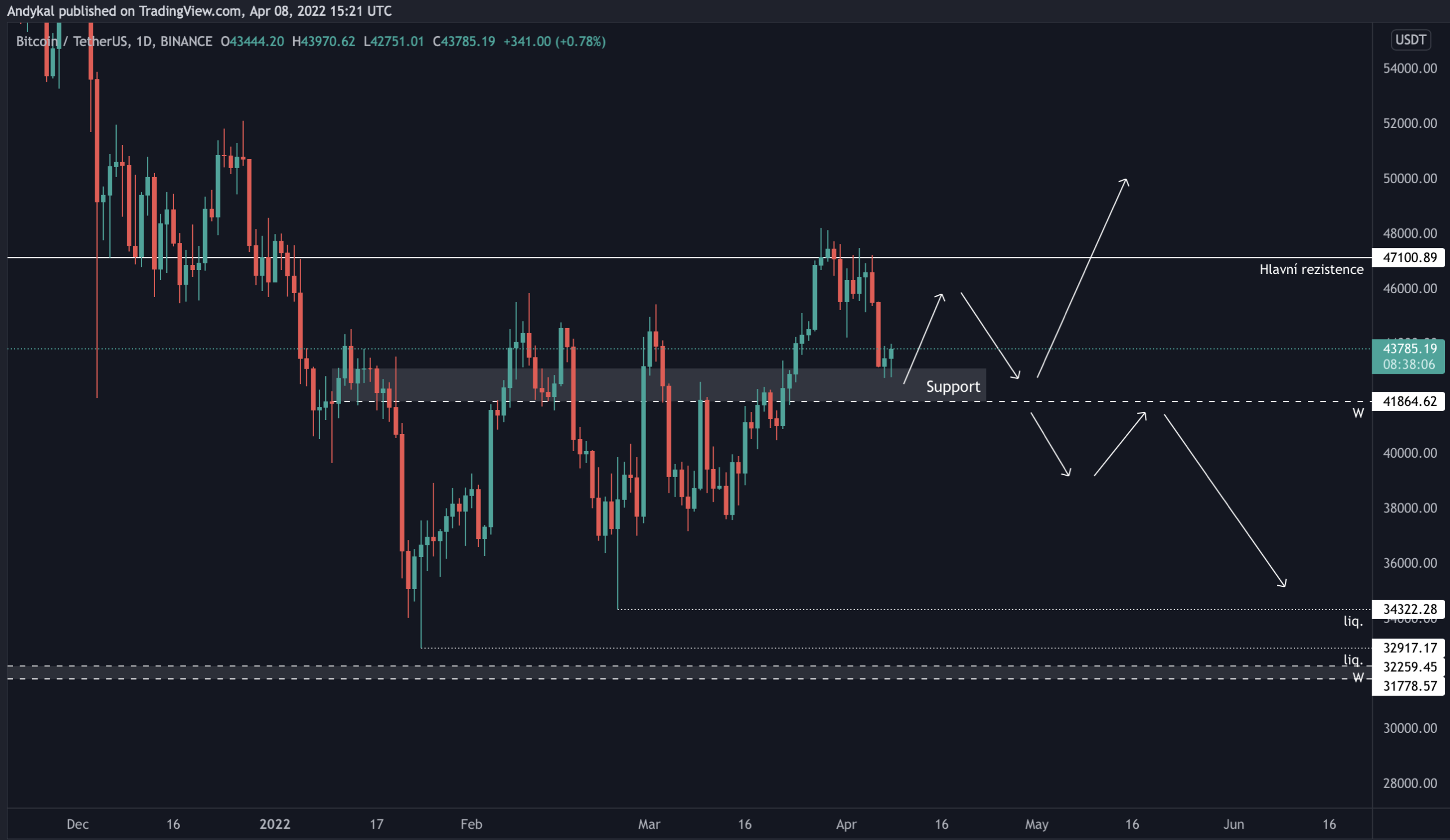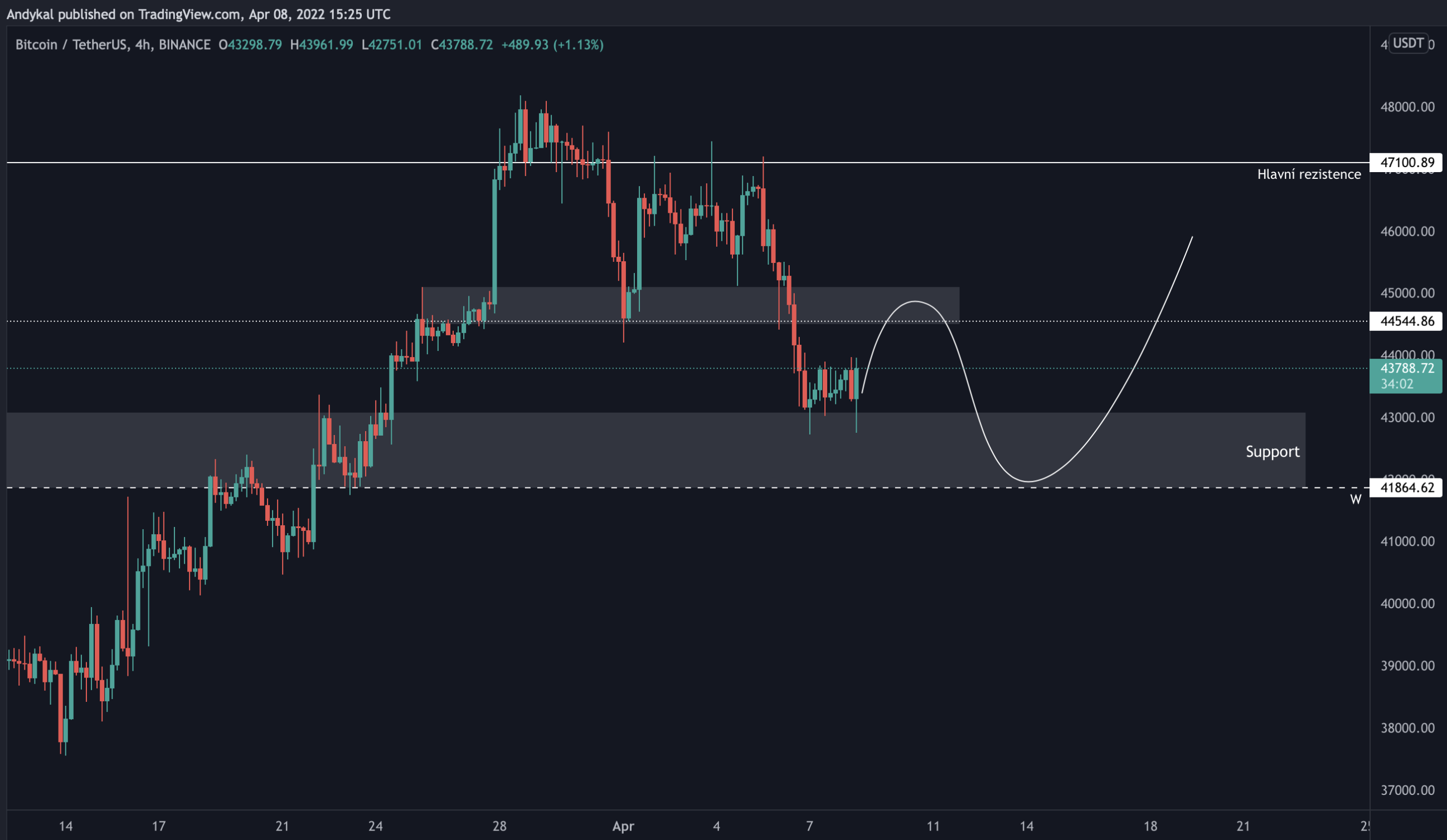 O 47 100 USD jsem to říkal, když jsme byli nahoře, druhá úroveň 41 800 je zajímavá až nyní, když je BTC blízko.