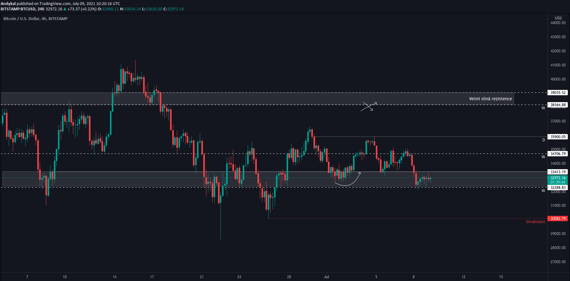 Ahoj tradeři, v minulé analýze jsme se bavili o zóně 33 380 – 32 250 USD, ve které očekávám odraz nahoru k rezistencím.