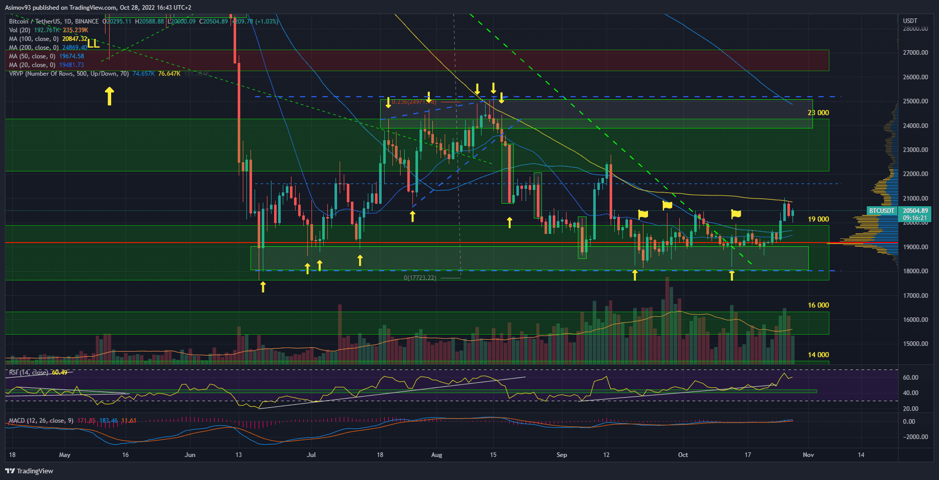 Býci jsou bez debat mnohem silnější a daří se jim cenu tlačit pomalu nahoru. Ale pro mne osobně současné price action není vůbec přesvědčivé. Stačí podle mne málo a jsme zase zpátky na 19 000 USD.