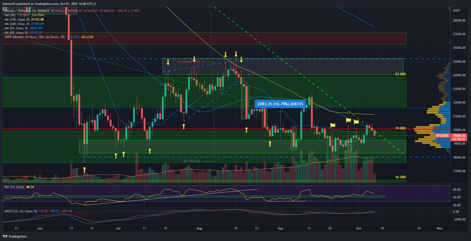 Bitcoin se zhruba od poloviny června absolutně nikam technicky neposunul. Osobně jsem doufal, že nejpozději na přelomu září/října přijde průlom. Většinou to tak totiž bývalo. Že s konce léta přišla mnohem větší dynamika, která trh s BTC zase někam posunula. Místo toho má trh tendenci pořád setrvávat v blízkosti 19 000 USD.