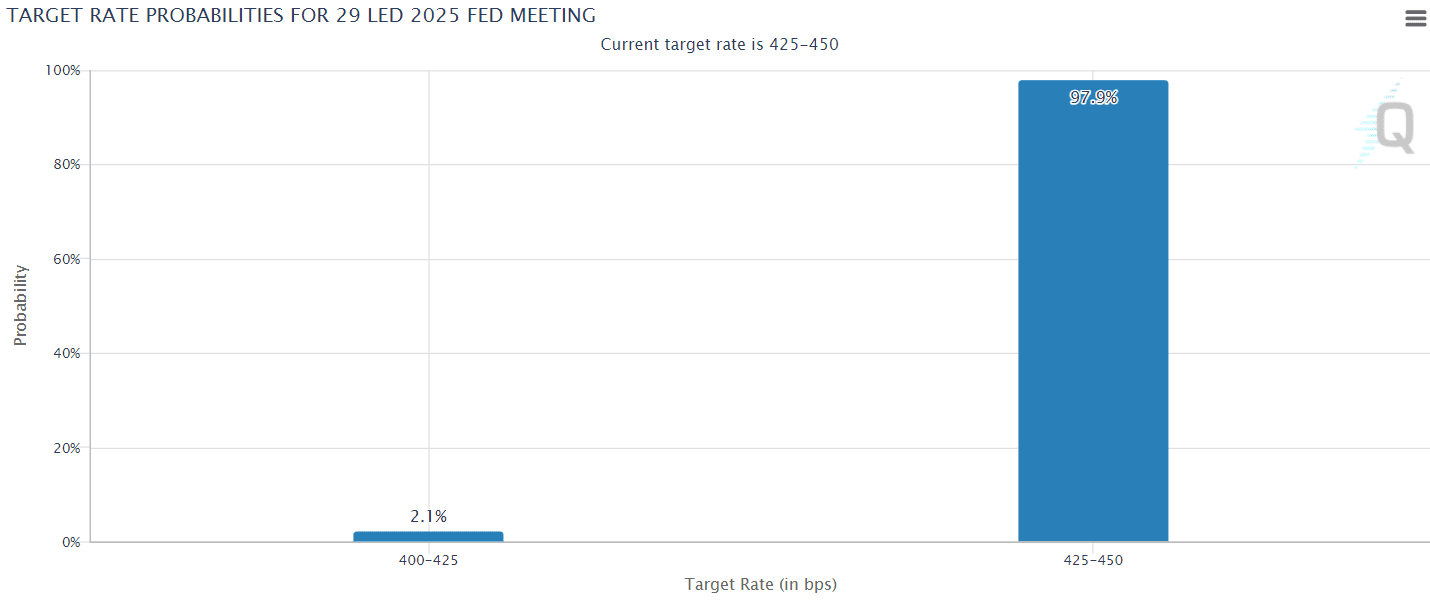 Nicméně jak můžete vidět výše na grafu, šance postupem týdne klesla až na 20 %, neboť nově zvolený americký prezident ani jednou nezmínil kryptoměny.
