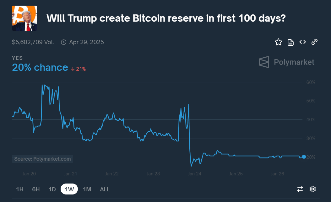Vývoj šancí na zavedení strategické rezervy z Bitcoinu během prvních 100 dní