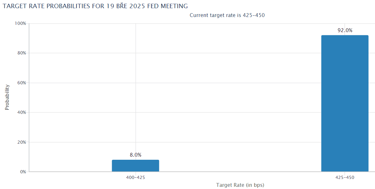 Podle nástroje FedWatch skupiny CME došlo ke snížení pravděpodobnosti toho, že americká centrální banka sníží úrokové sazby na dalším setkání během března.
