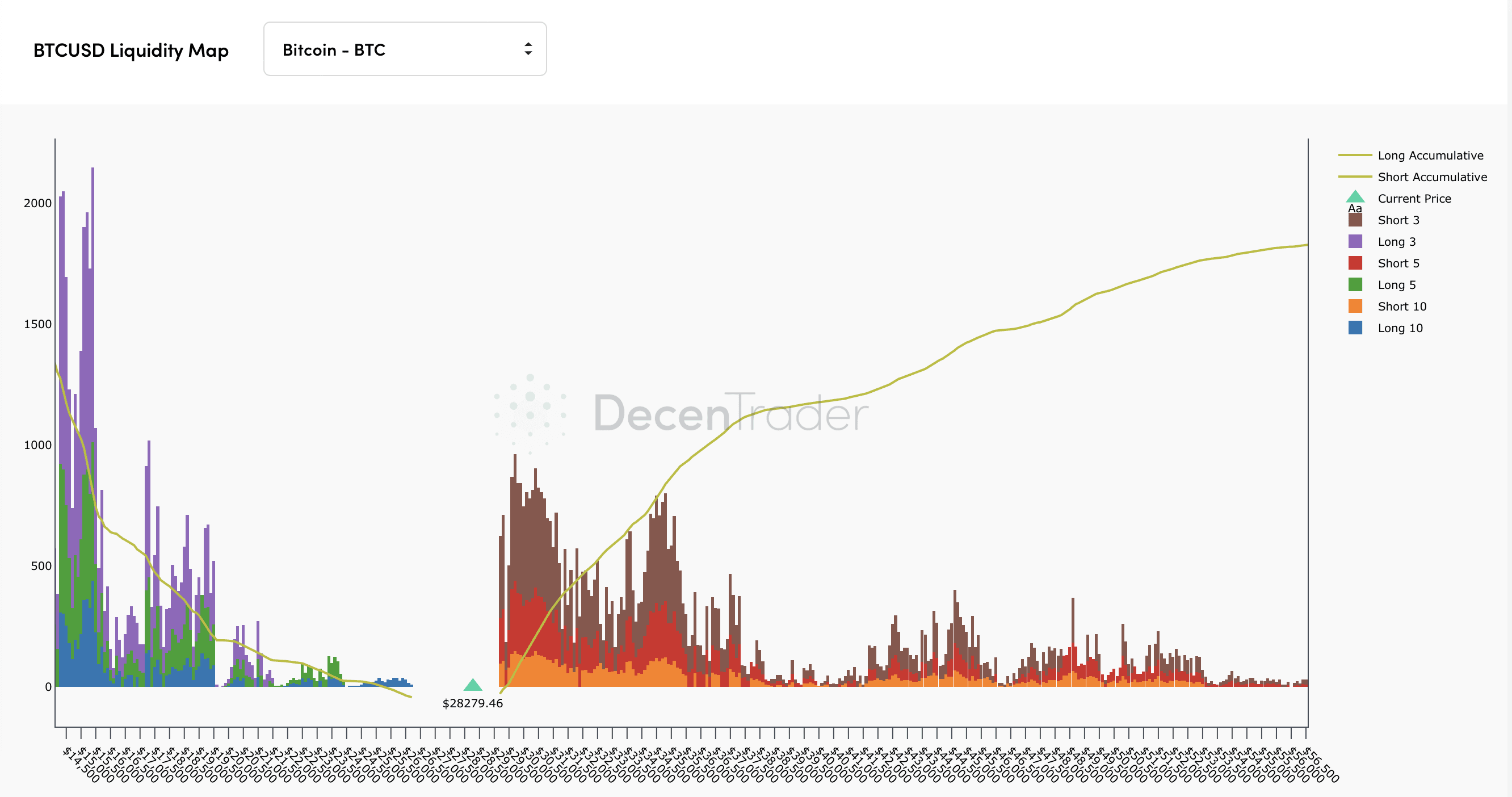 Tuto úvahu podporuje také graf likvidací pozic na Bitcoinu ze stránky Decentrader. Zde můžeme zcela jasně vidět že počet likvidací mezi aktuální cenou a 35 tis. je enormní.