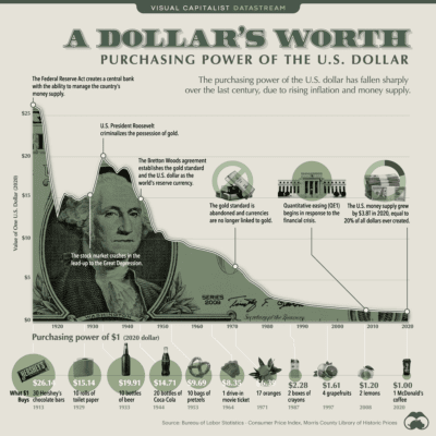 Vývoj kupní síly dolaru v průběhu času.
