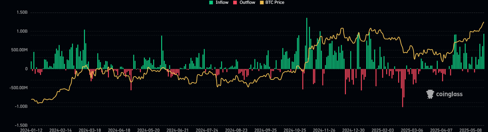 Bitcoinovým ETF se tento týden rovněž extrémně dařilo. Od pondělí do čtvrtka přilákala od investorů 2,5 miliardy dolarů.