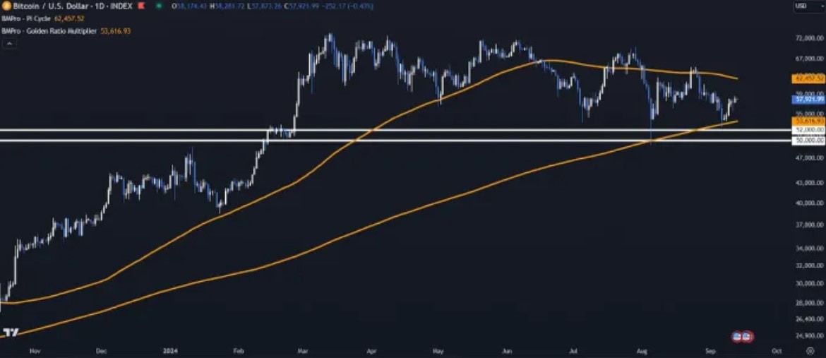 Z pohledu technické analýzy mluví odborníci zejména o dvou důležitých levelech. První je kolem ceny 62 000 USD, kde ukazuje rezistenci indikátor Pi Cycle Top.
