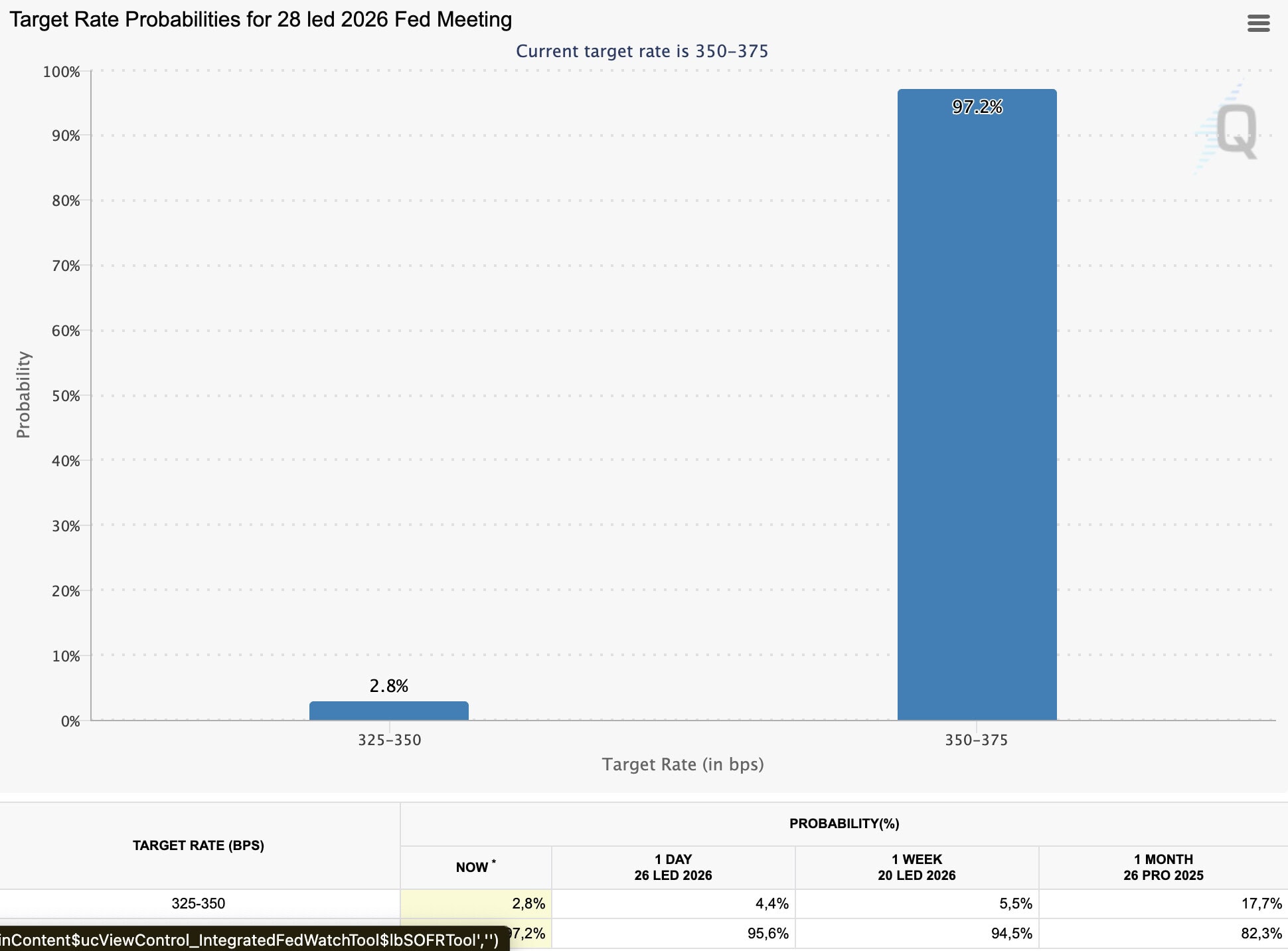 Pravděpodobnost snížení úrokových sazeb podle Fedu