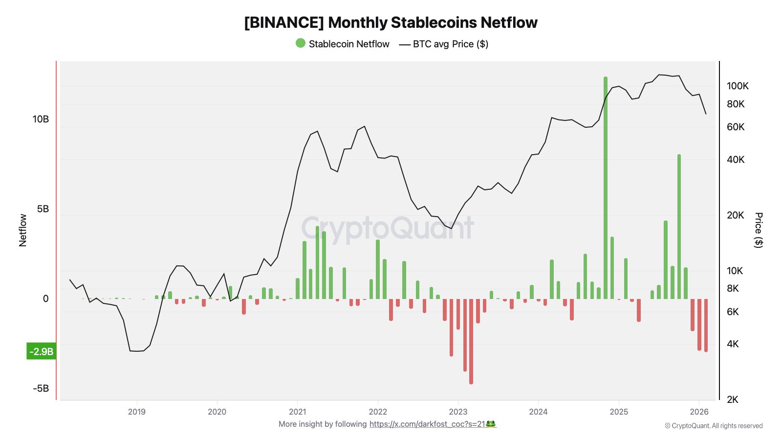 Z burzy Binance například mizely stablecoiny tři měsíce v řadě – jen od začátku února to byly 3 miliardy dolarů.