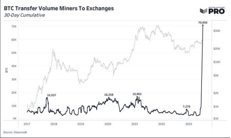Příliv bitcoinů na burzy od bitcoinových těžařů