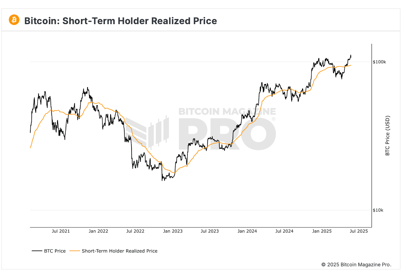 Vývoj realizované ceny Bitcoinu u krátkodobých držitelů