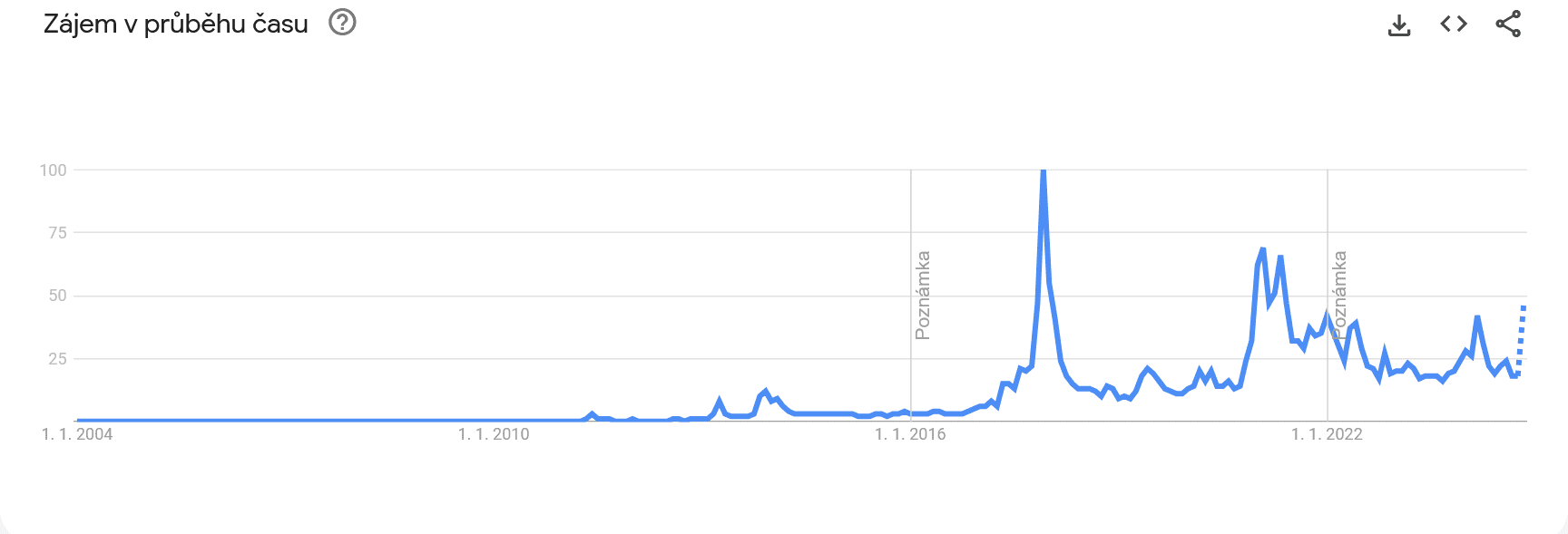 Dle dat zájem o bitcoin v posledních měsících zase markantně vzrostl. Jsme na stejných hodnotách jako v březnu současného roku. Stále daleko od zájmu z roku 2017 a konce roku 2020. Můj argument ale platí, uvedená data nejsou tolik relevantní.