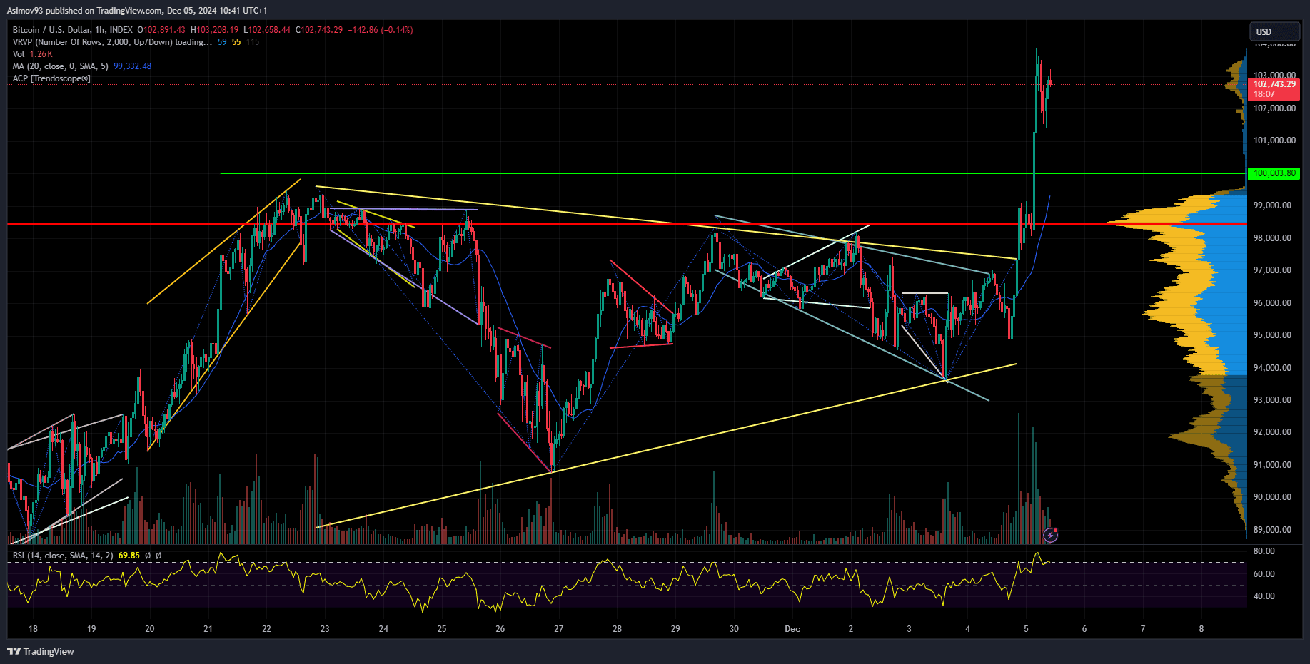 Bitcoin na hodinovém grafu překonal 100 000 dolarů