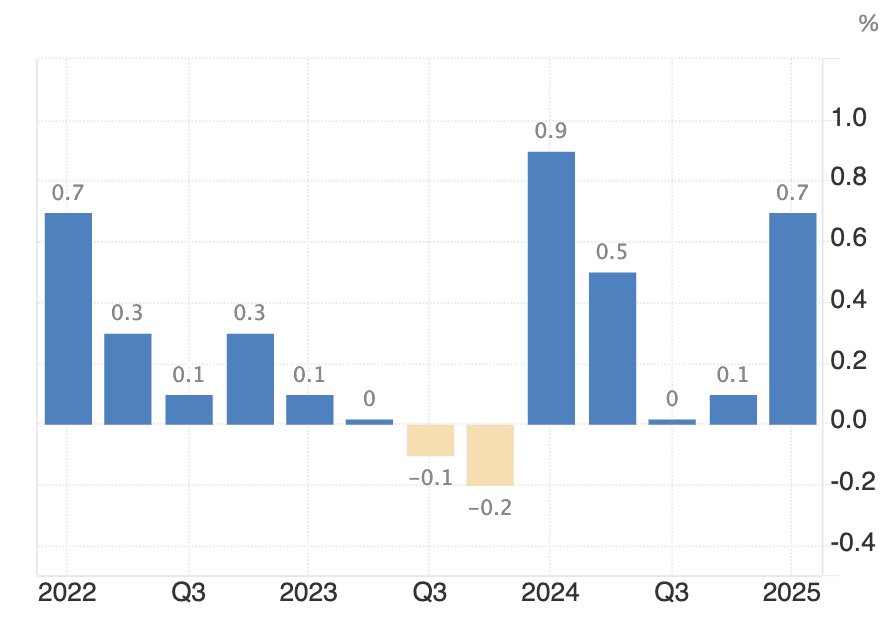 Za poslední tři měsíce HDP vzrostl o 0,5 % v porovnání s předchozím čtvrtletím, přičemž v období do dubna vzrostl o 0,7 %.