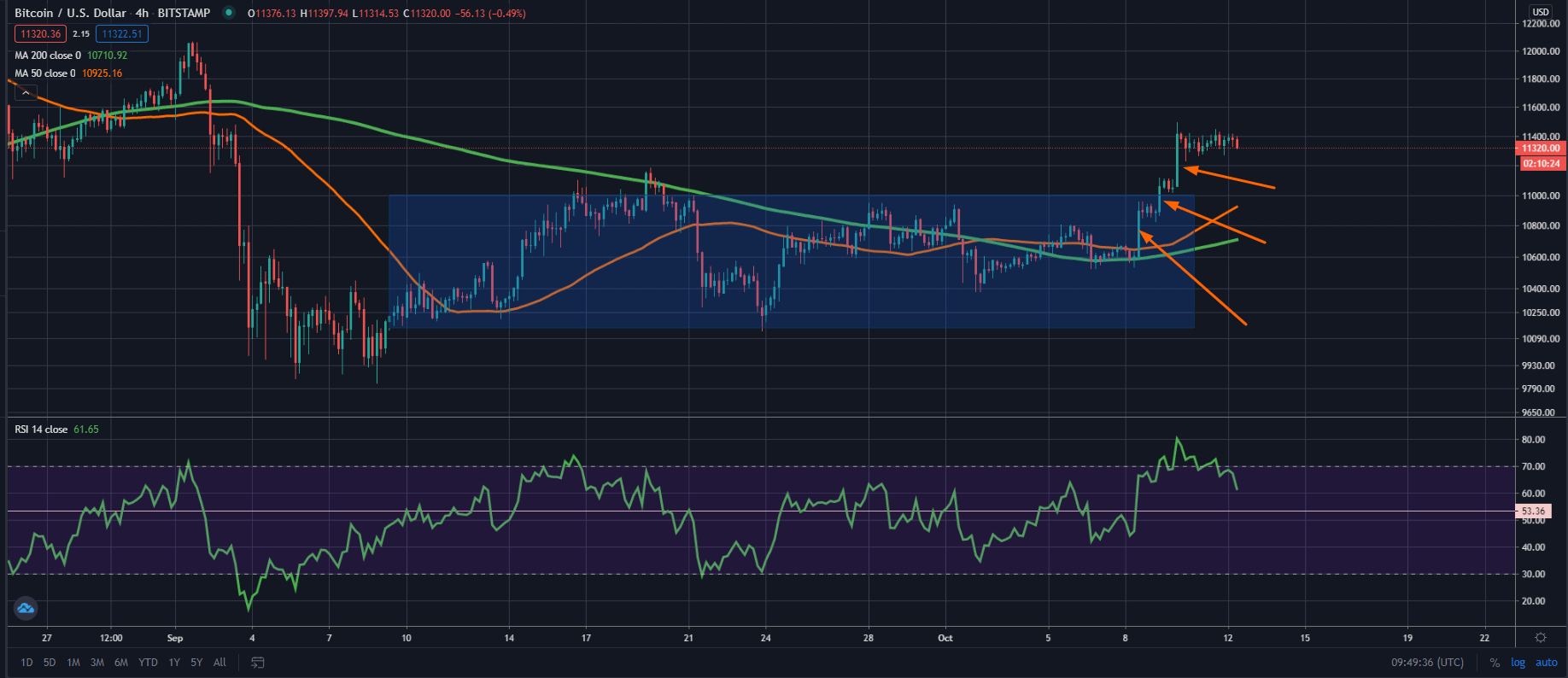 Na konci minulého týdne tři velké nákupy za sebou posunuly cenu Bticoinu nad hranici 11 tisíc dolarů, což je v prostoru reflektováno jako bullish znamení, a zatím se jeví, že by tam cena mohla zůstat.