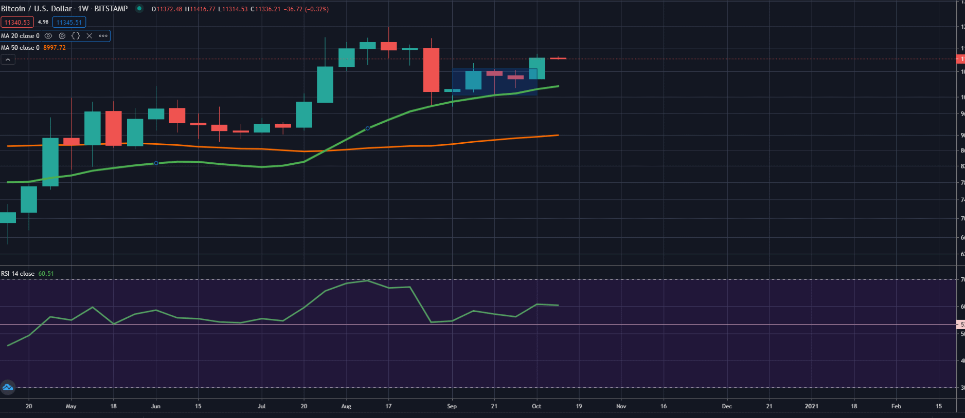 Cena Bitcoinu se poslední měsíc pohybovala pouze ve velmi uzkém rozmezí 10 150 a 11 000 USD. Tato oblast poslední měsíc důsledně fungovala jako rezistence i support na obou stranách.